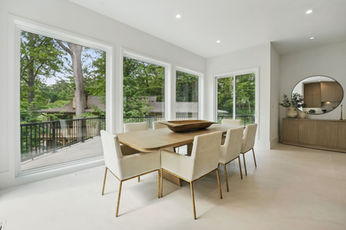 A modern new build on sought-after Lake Barcroft, featuring sleek finishes, tile and hardwood flooring, and floor-to-ceiling windows that frame the lake and blur the line between indoors and out.
